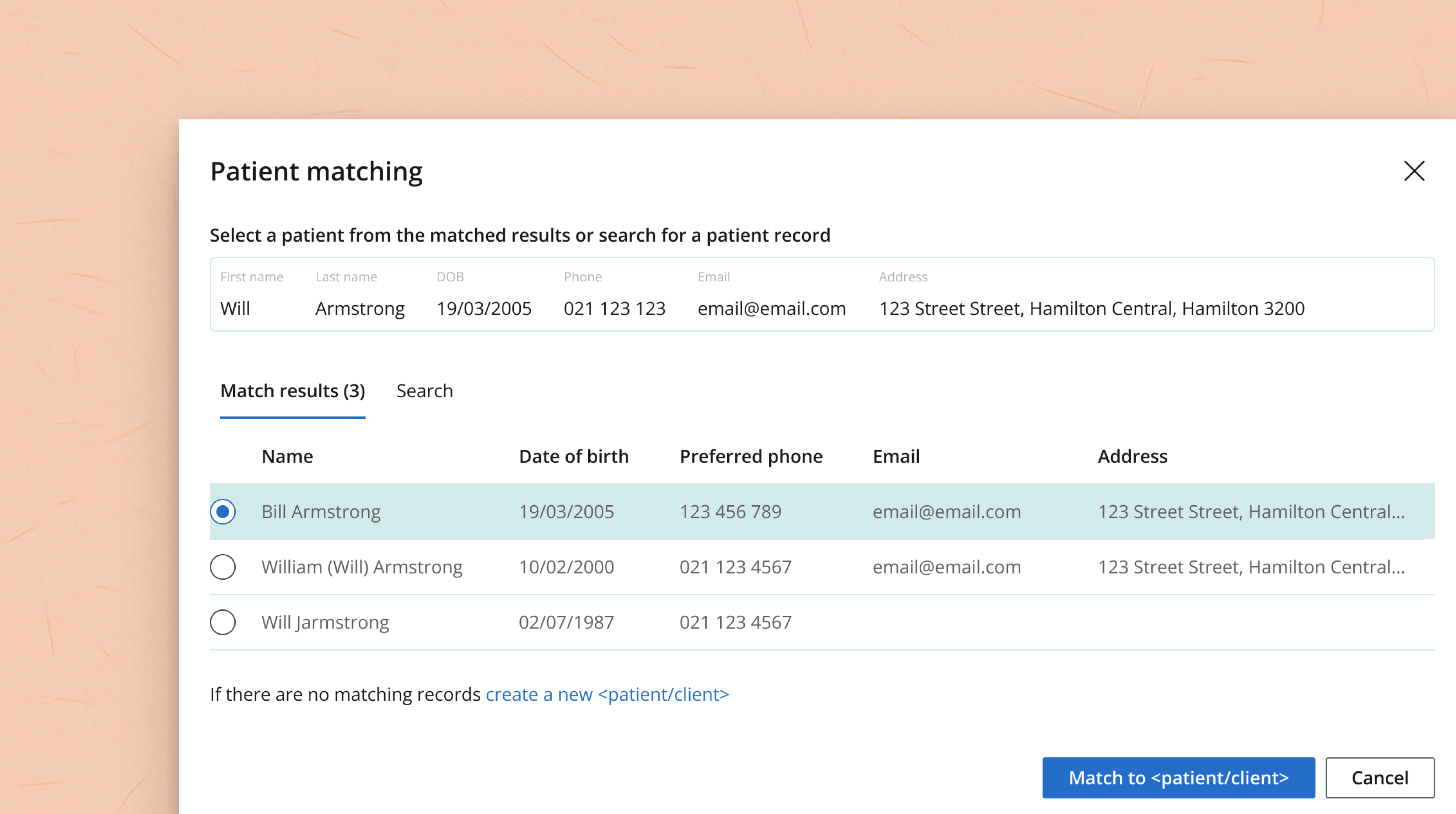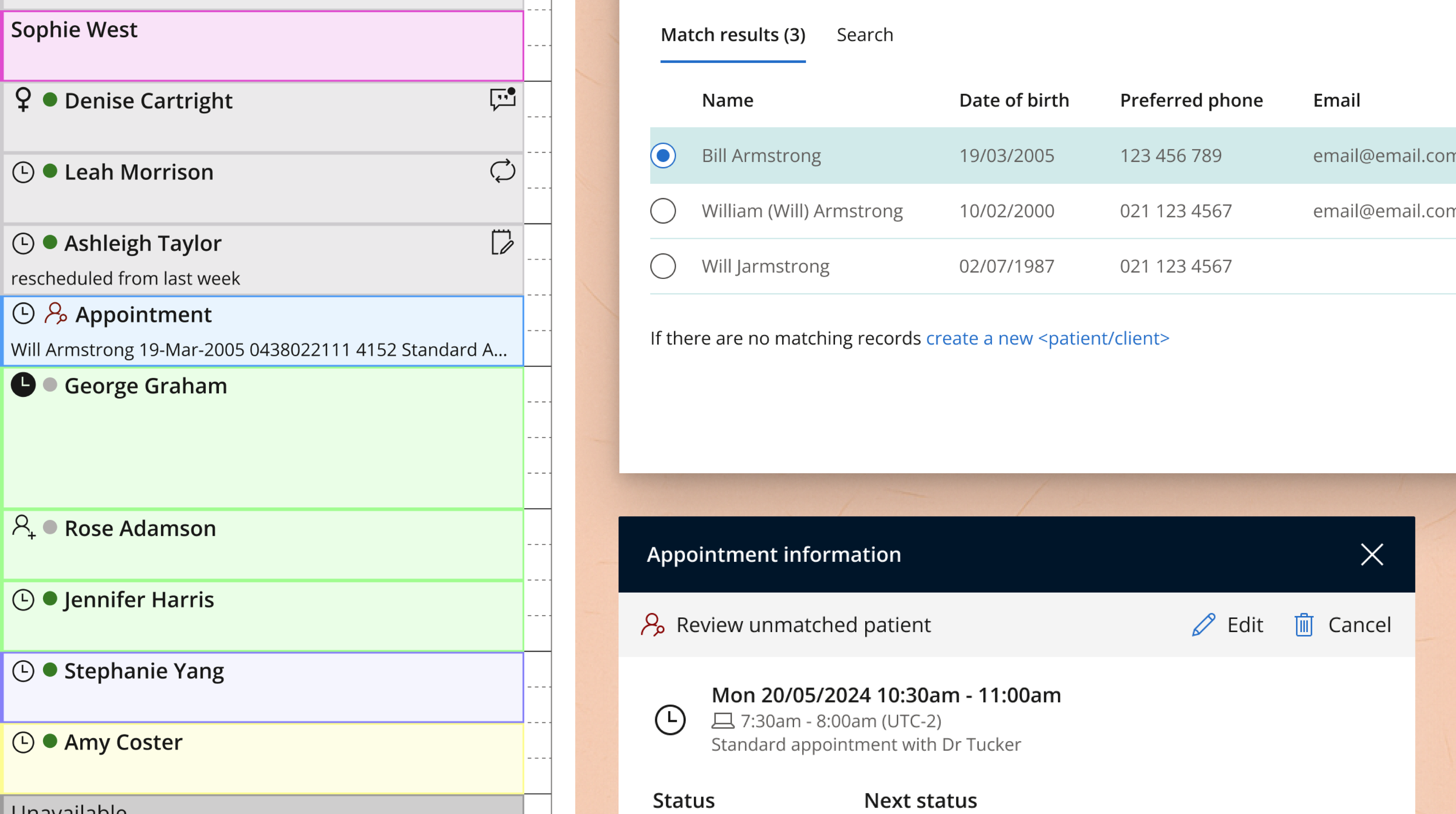 Patient matching for appointments booked online - Providing workflows to search and link patients to Best Health Booking appointments in Omni