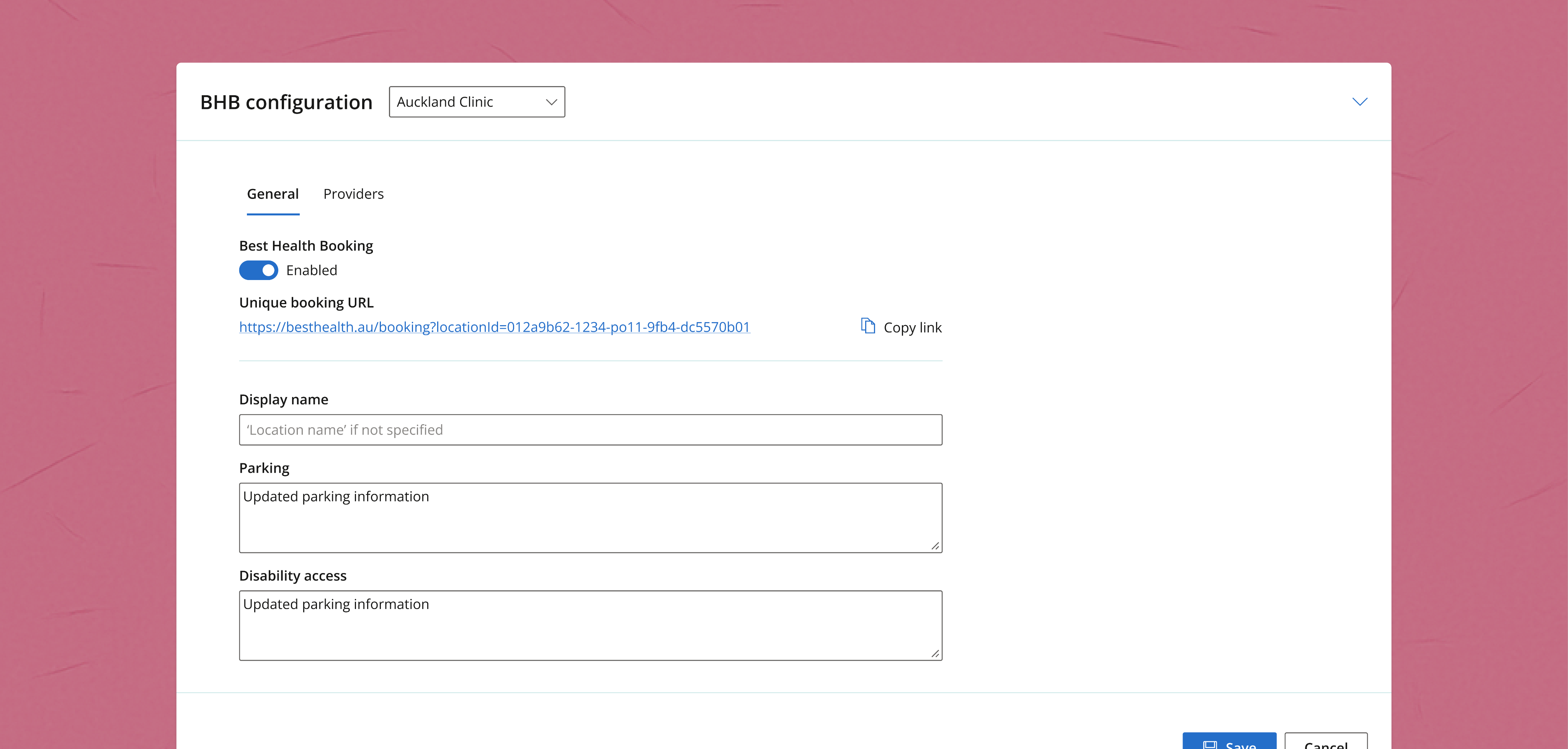 Online booking for multi-location practices - Supporting location specific and practice-wide online booking settings in Omni